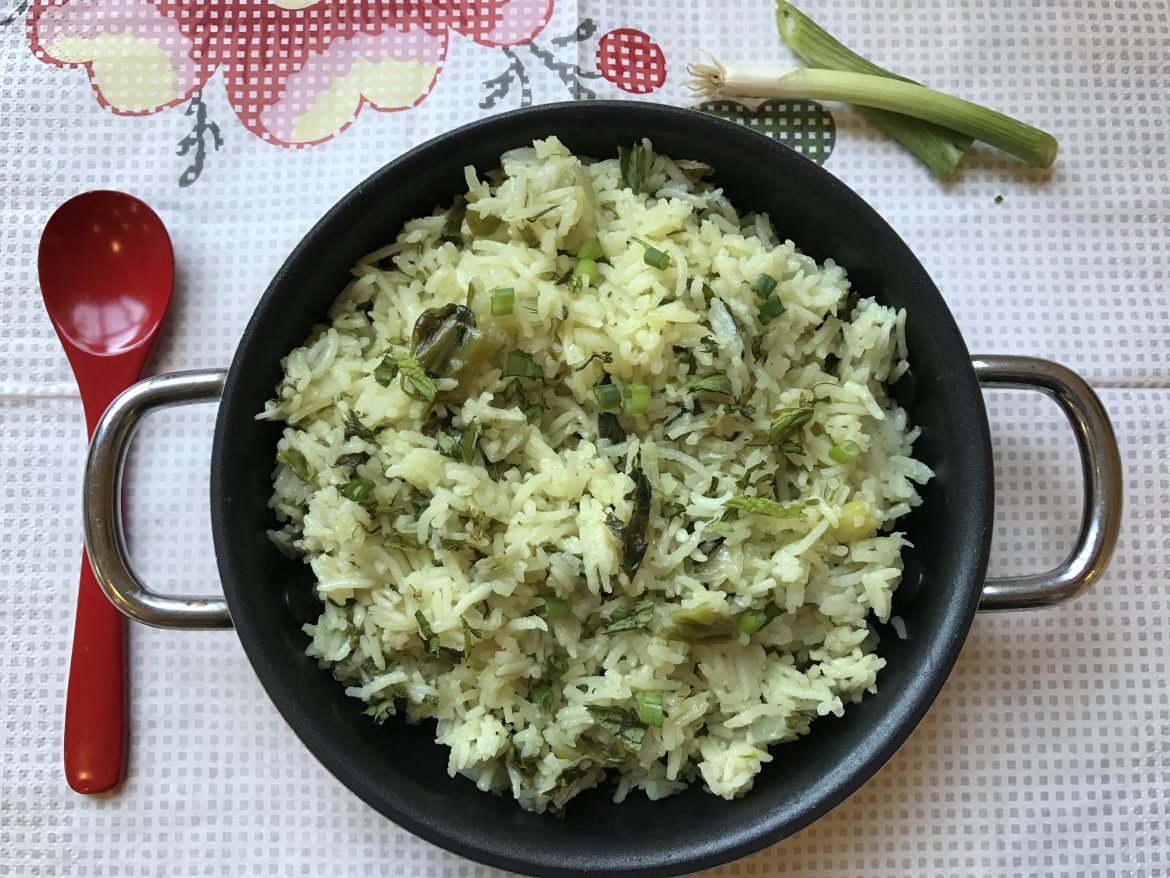 אז היום יהיה אורז ירוק עם המון ירוקים טריים שמוסיפים טעם נפלא לגרגרים הלבנים האלה.