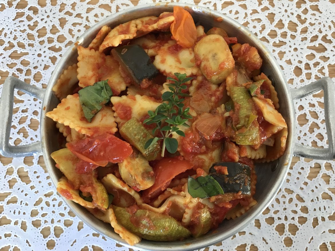 -מעבירים לסיר הירקות את הפסטה, מערבבים כך שהרוטב יכסה טוב טוב את הפסטה מבשלים עוד 2-3 דקות ומגישים.