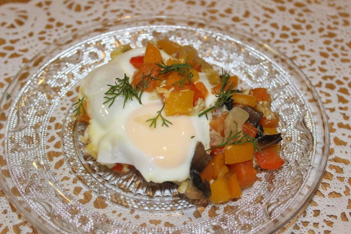 - מוסיפים את הביצים (לא מערבבים את הביצים עם הירקות) מכסים. לא נוגעים. מבשלים עד שהחלמון מתייצב. מידי פעם מרימים מכסה, בודקים, מריחים ונהנים.