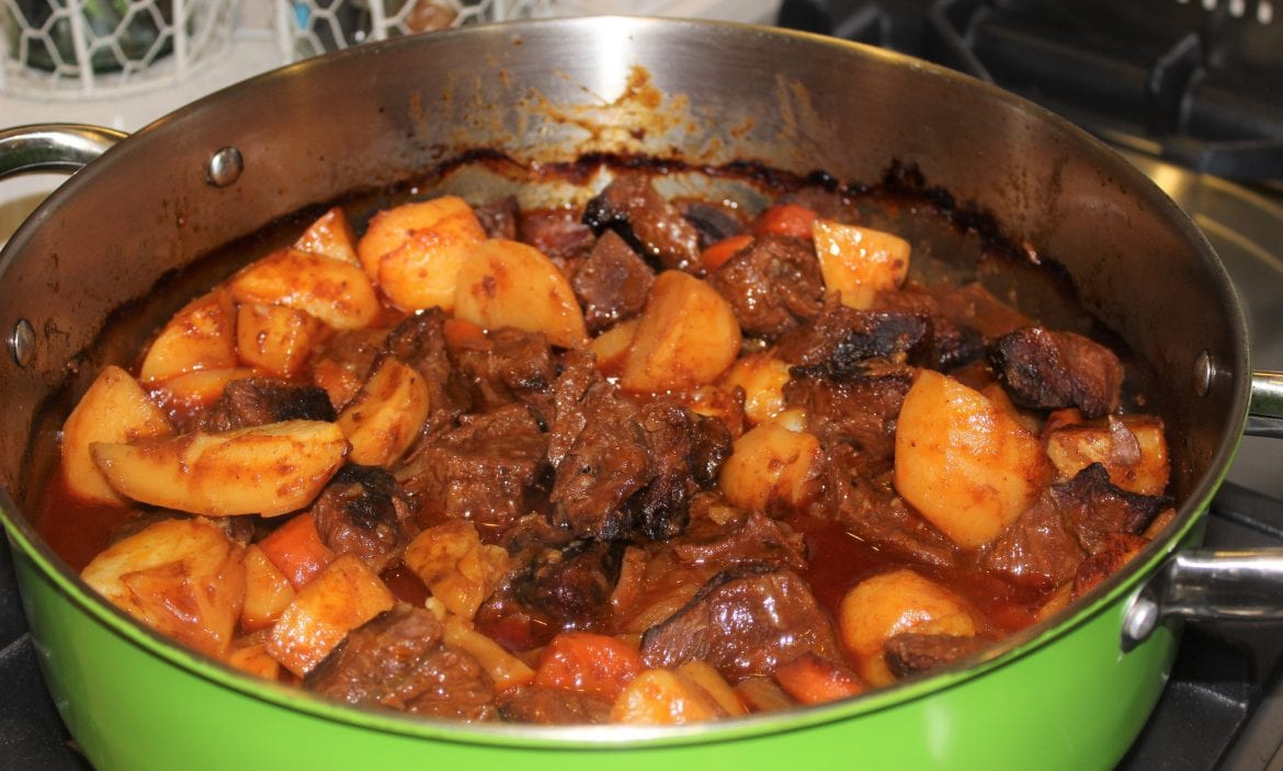 -מטגנים בשמן את הבצל עד שקיפות מוסיפים את חתיכות הבשר ומטגנים קלות. (יש כאלה שמקמחים את חתיכות הבשר בקמח, אני פחות מתחברת לעניין)