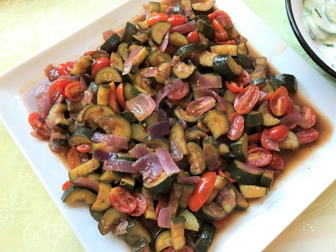 כלתי המתוקה (והצמחונית) עשתה תבשיל עם זוקיני ועגבניות שרי