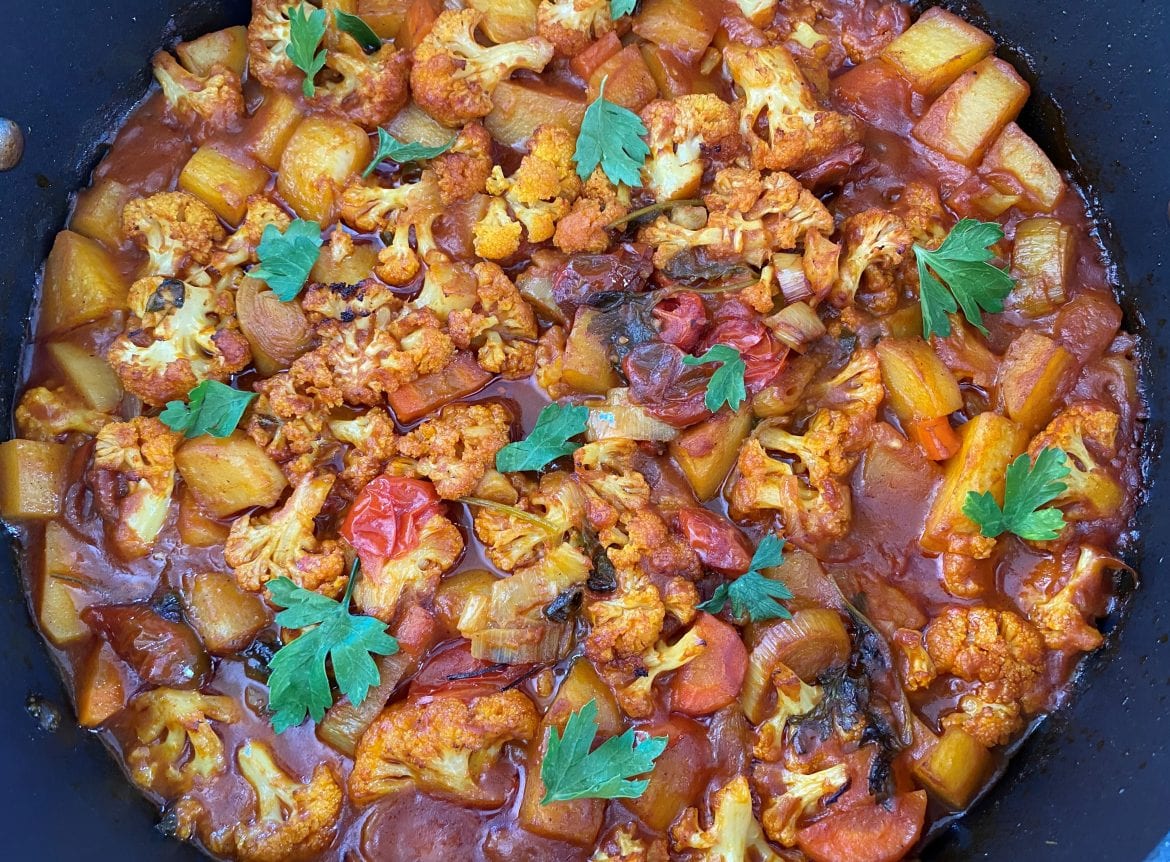 סיר נפלא של ירקות טבולים ברוטב אדמדם